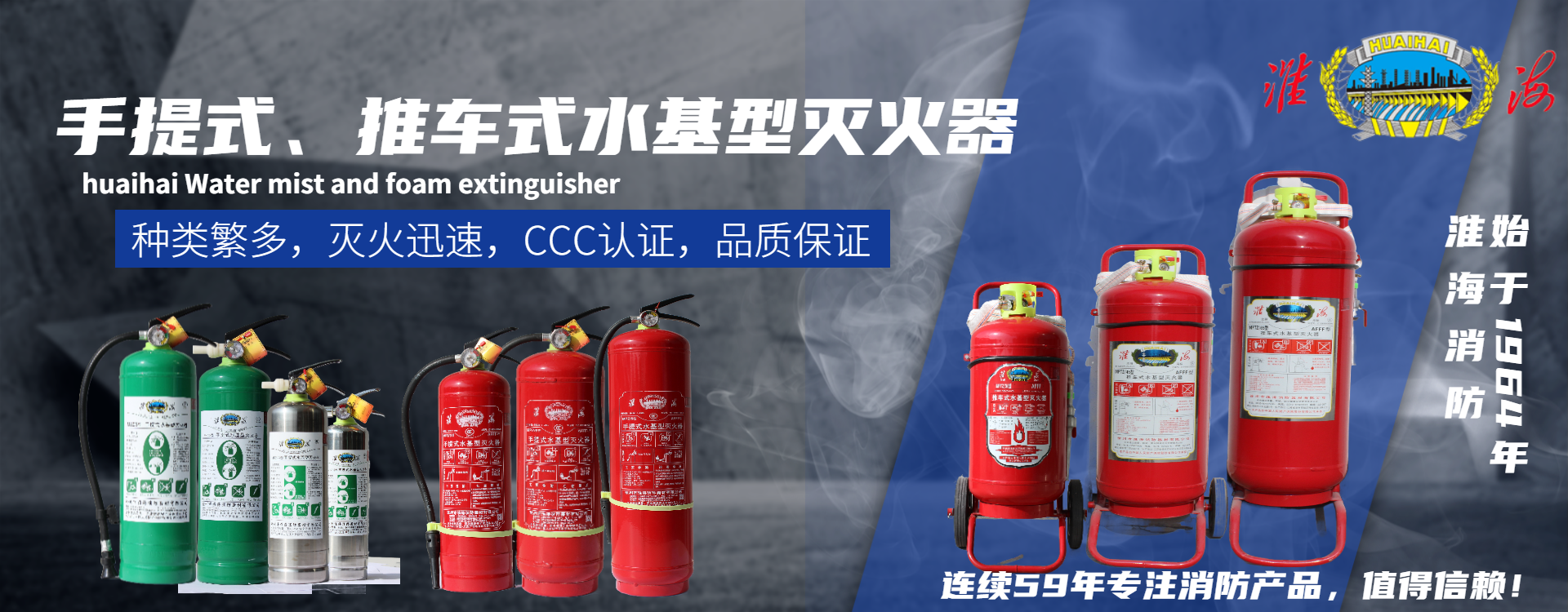 徐州市淮海消防器材有限公司具備生產(chǎn)手提式和推車(chē)式干粉滅火器、手提式和推車(chē)式二氧化碳滅火器、懸掛系列滅火裝置、手提式和推車(chē)式水基型滅火器、室外消火栓和水泵接合器、消防軟管卷盤(pán)等九大系列消防產(chǎn)品的3C生產(chǎn)資質(zhì)。其中滅火器系列產(chǎn)品年生產(chǎn)能力為700萬(wàn)具(臺(tái))。